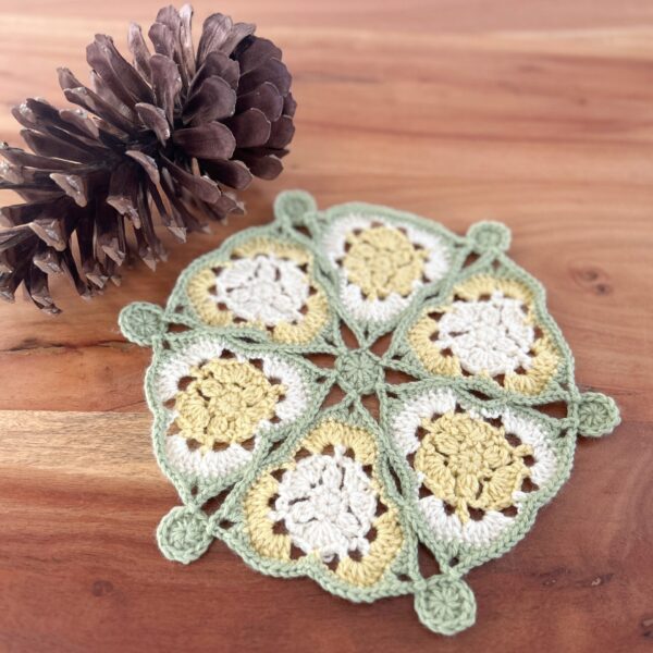 初心者向けのかぎ針編みキット、三角モチーフと丸を繋いだドイリーを楽しんでみませんか?